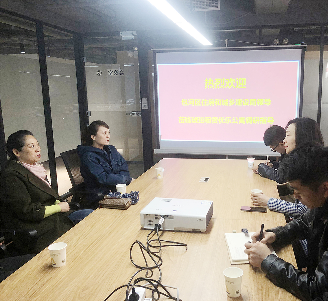 4月7日上午,合肥市包河區(qū)住房和城鄉(xiāng)建設(shè)局副局長羅艷麗一行蒞臨優(yōu)樂公寓三孝口店調(diào)研指導(dǎo)工作,琥珀租賃常務(wù)副總經(jīng)理李婷婷攜部分員工參與陪同調(diào)研。