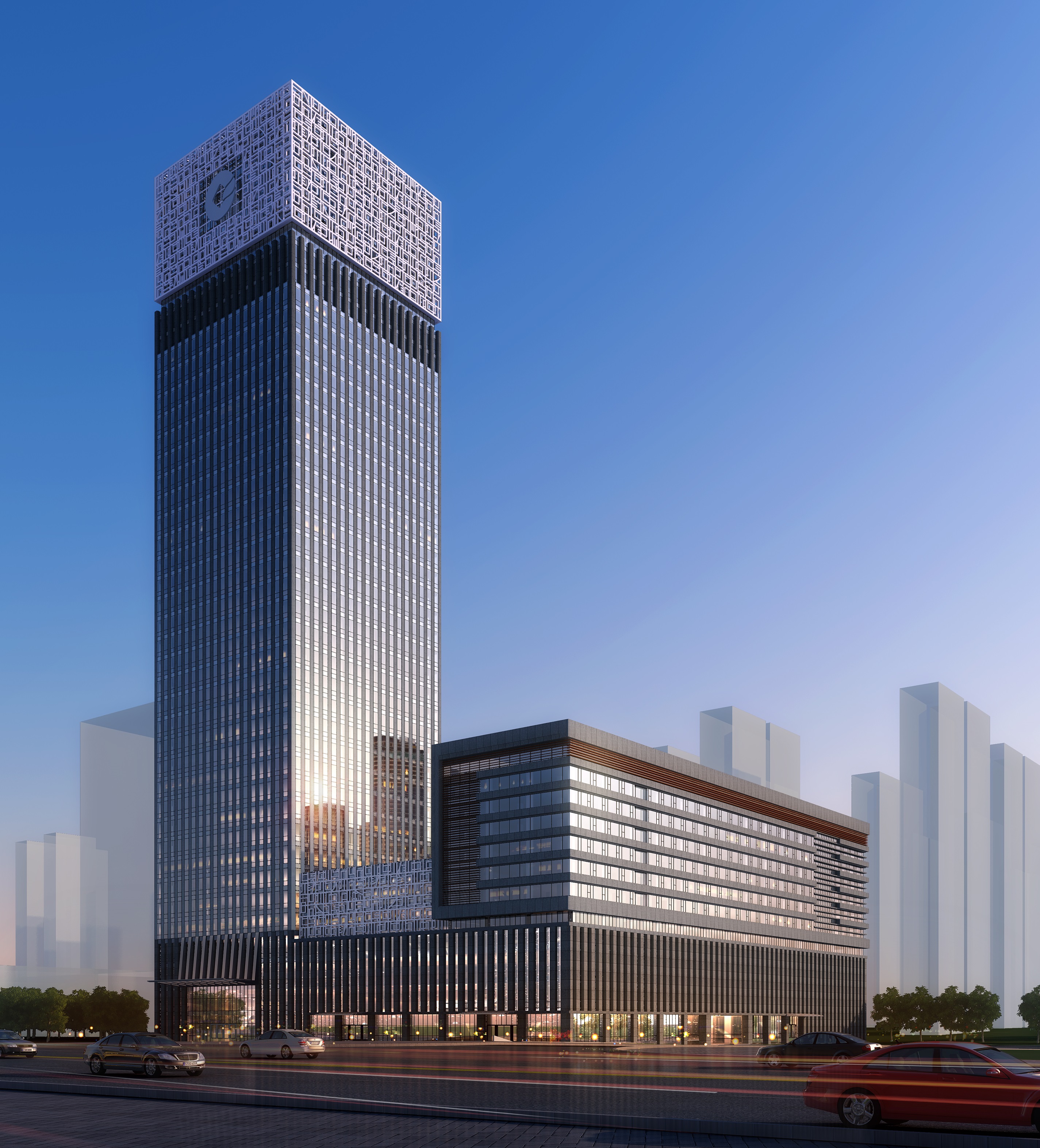 項目位于合肥市濱湖新區(qū),總建筑面積為15.48萬㎡,辦公主樓建筑高度180米(38層),結構形式為框筒,目前是公司代建項目高度之最。項目涉及建筑、結構、智能化、泛光照明、供配電等各專業(yè)以及屋頂停機坪、中央空調、低壓柴發(fā)、太陽能等各類大型設備,功能齊全,技術復雜。